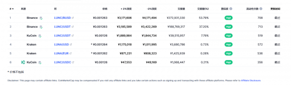 Terra Classic - LUNC币各个交易所价格