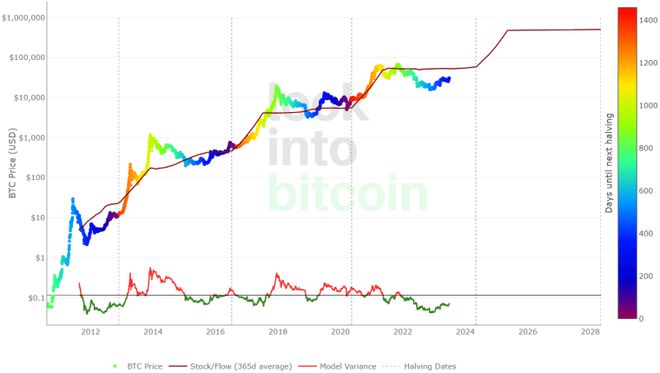 比特币库存流量(S2F)模型表明,明年比特币减半事件前后将出现新一轮牛市。
