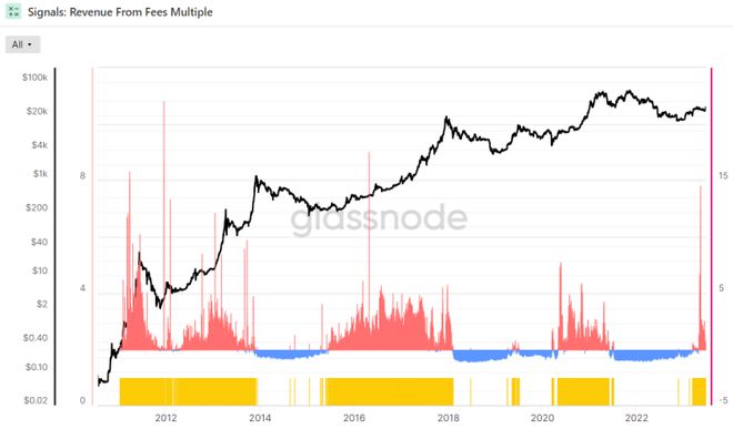 在这种情况下,Glassnode 的 Z 分数是高于或低于过去 2 年平均比特币费用收入的标准差数。