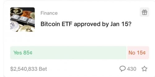 Polymarket 具体下注的方式是以期权为概念,如果用户购买正向期权(目前价格设定在 0.85 美元),并且现货 ETF 在 1 月 15 日前通过,那么你的期权价值将变为 1 美元;如果没有通过,期权价值则会归零。当然,用户也有选择购买反向期权的可能性。