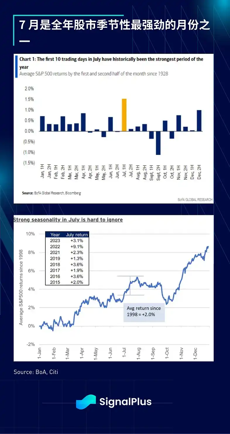 我们之前提到过 7 月的强势季节性,目前为止进展也相当顺利。7 月的前两周历来是美国股市**劲的时期,而整个 7 月本身也是一个表现非凡的月份。可以分点热度给加密货币吗?