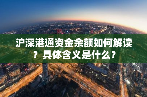 沪深港通资金余额如何解读?具体含义是什么?