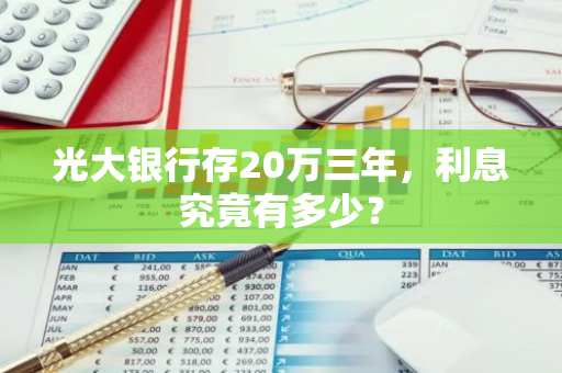 1. 活期存款: 光大银行活期存款利率为0.3%。 若您存款20万,三年期限的利息为:200,000 × 0.3% × 3 = 1,800元。