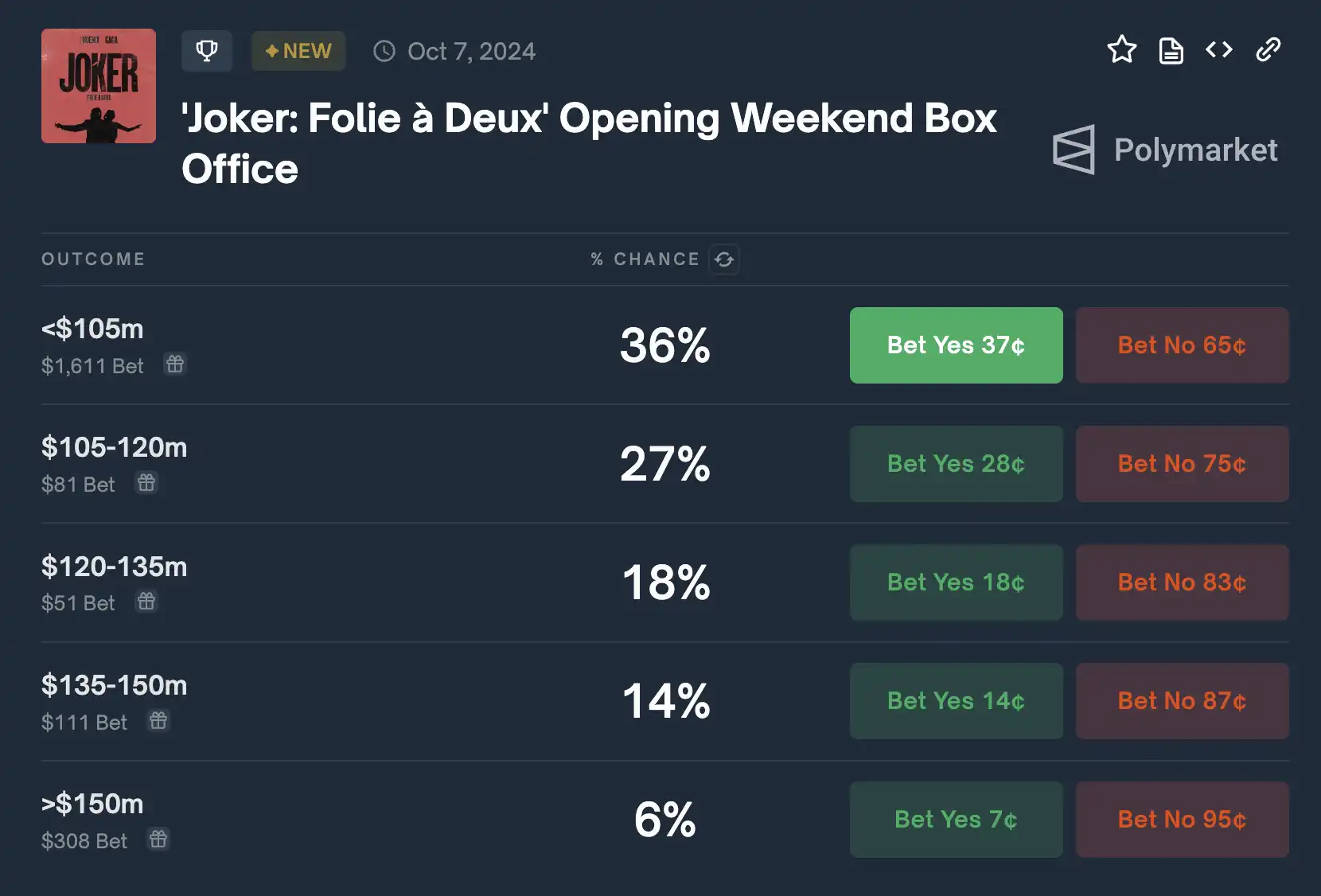 2.《小丑:双人舞曲》首映周末票房
