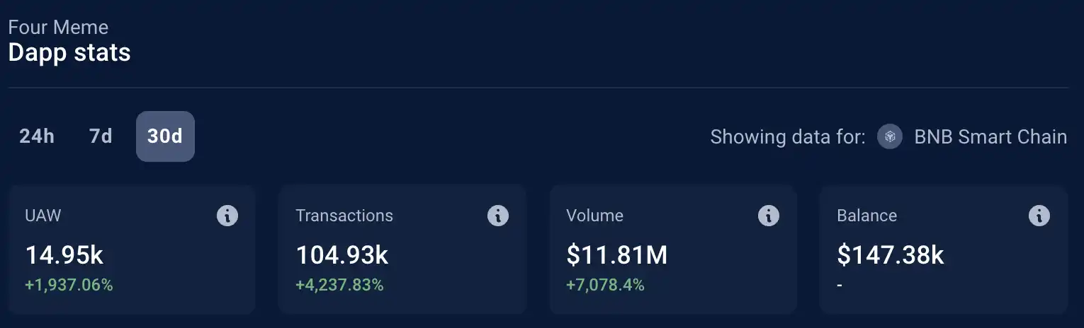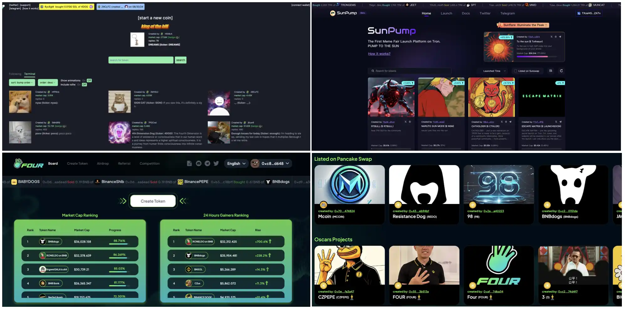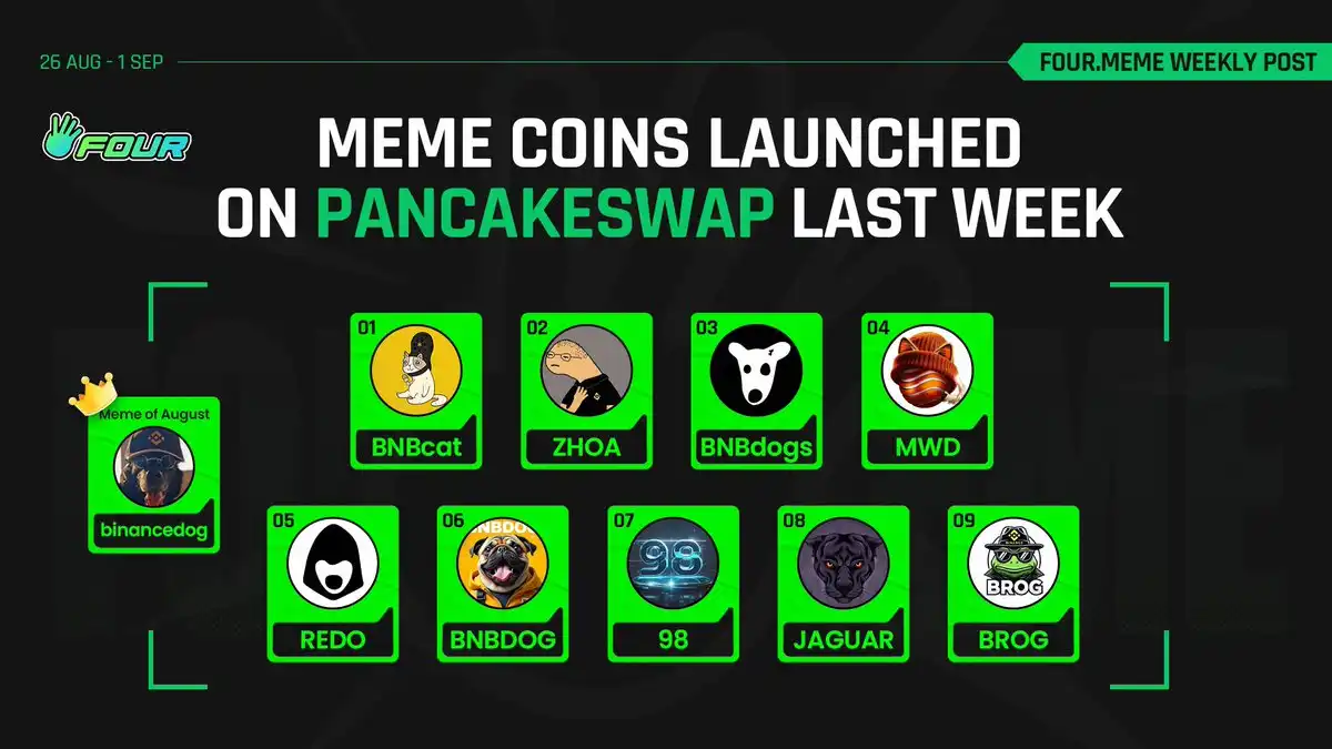 BNB Chain 在 meme 市场的布局已经初见成效。早在今年 4 月,BNB Chain 就举行了「meme 币创新之战」竞赛,为 meme 开发者提供共计 100 万美元的奖金激励,集合 BNB Chain 生态资源进军 meme 市场。8 月,「meme 币创新之战」已经启动了第三轮,Four.meme 正是本轮比赛的四个合作平台之一。