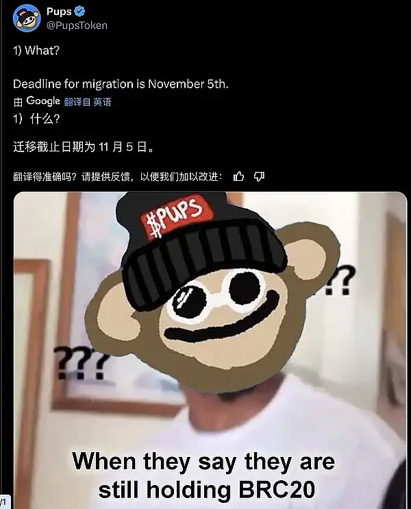 ● Pups @PupsToken 迁移截止时间 11 月 5 号。