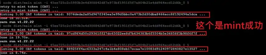 ⑤ 再次输入 `bash ~/cat20-oooooyoung.sh` 进入脚本界面,输入 3 进行 $CAT **的循环 mint,因为打的人多可能会 mint 失败导致重试,一直挂机即可