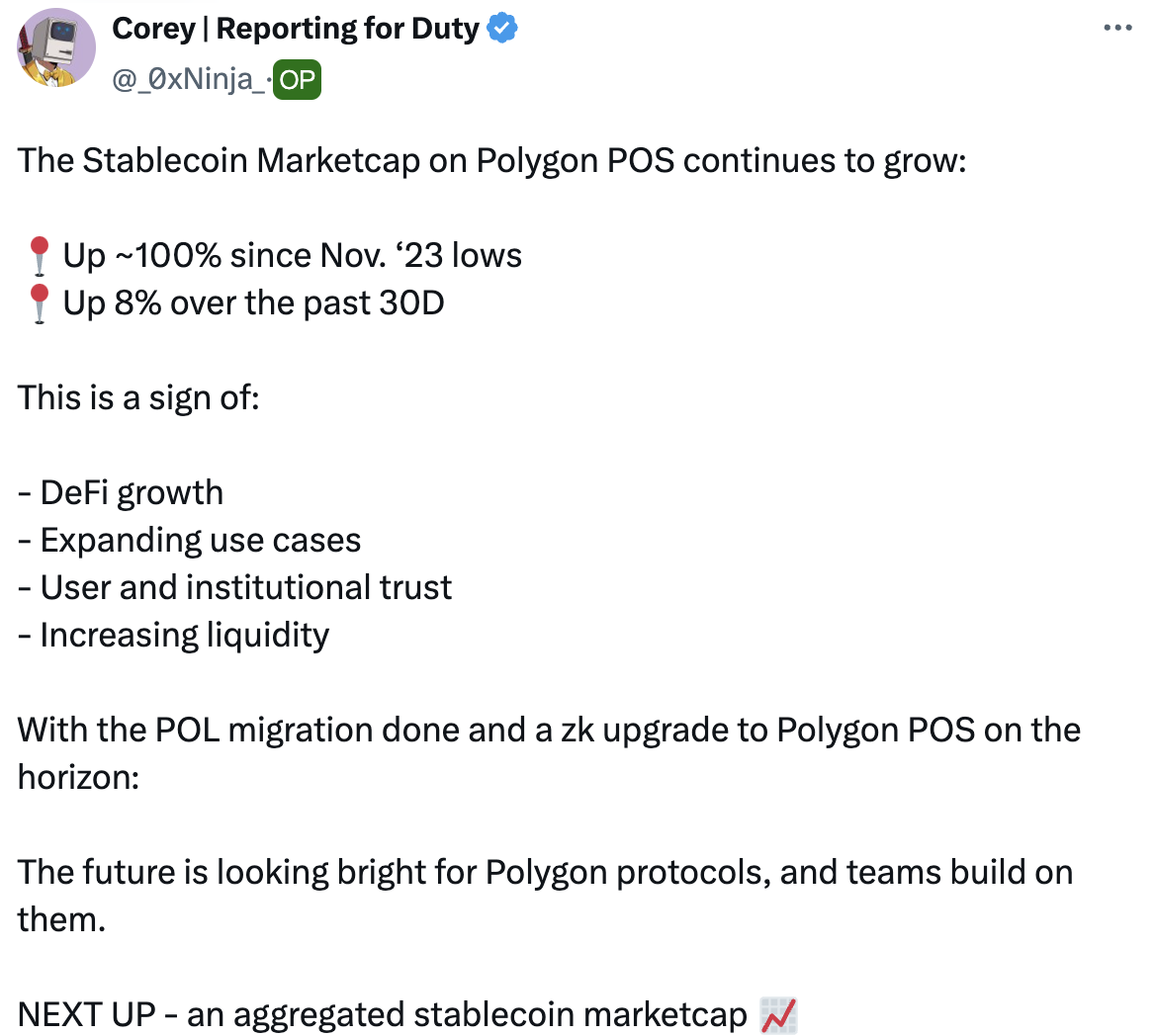 2.Polygon POS 稳定币市值持续上涨。@_0xNinja_