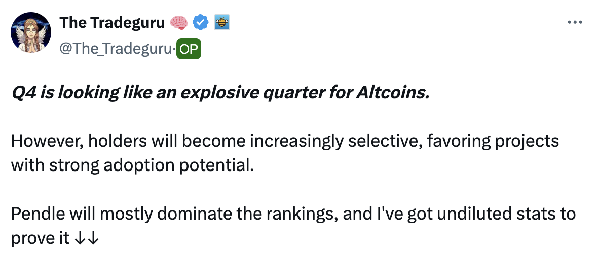 3. 从数据统计角度分析 Pendle 潜力。@The_Tradeguru