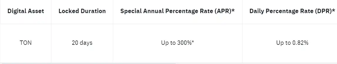 同时,Hamster Kombat 还将成为 Binance 超级赚币(Super Earn)上线的**一款**,可享受限时高额年化利率。此前,TON 在 Binance 超级赚币上的特别年利率高达 300%。