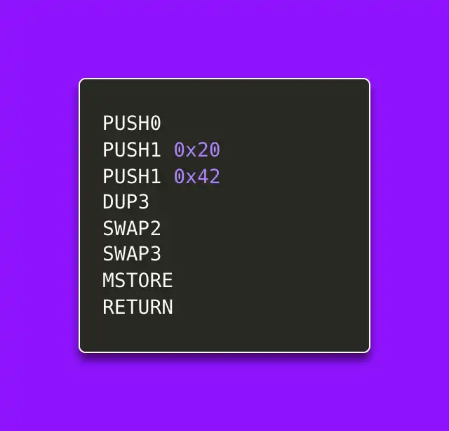 **个代码片段很直接,我们将输入推送给 mstore,它将一个值存储在内存中,然后将输入推送给 return,它将内存的一部分返回给调用者。第二个代码片段做了**相同的事情,但方式不那么直接。