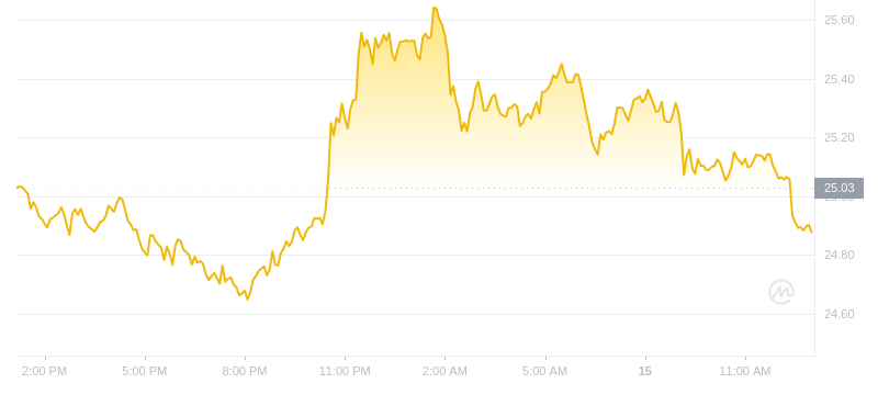 目前,Avalanche (AVAX) 的价格为 $24.88,在过去 24 小时内下跌了 0.55%。