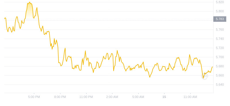 截至 2024 年 9 月 15 日 13:00,Toncoin (TON) 的价格为 5.6785803673039 美元。其 24 小时交易量为 193766306.60964 美元,价格在过去 24 小时内下跌了 1.84631972%。