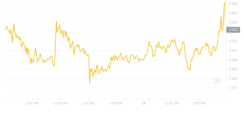 THORChain (RUNE) 的价格目前为 4.06 美元,交易量为 6170 万美元。在过去 24 小时内,其价格上涨了 0.74%。