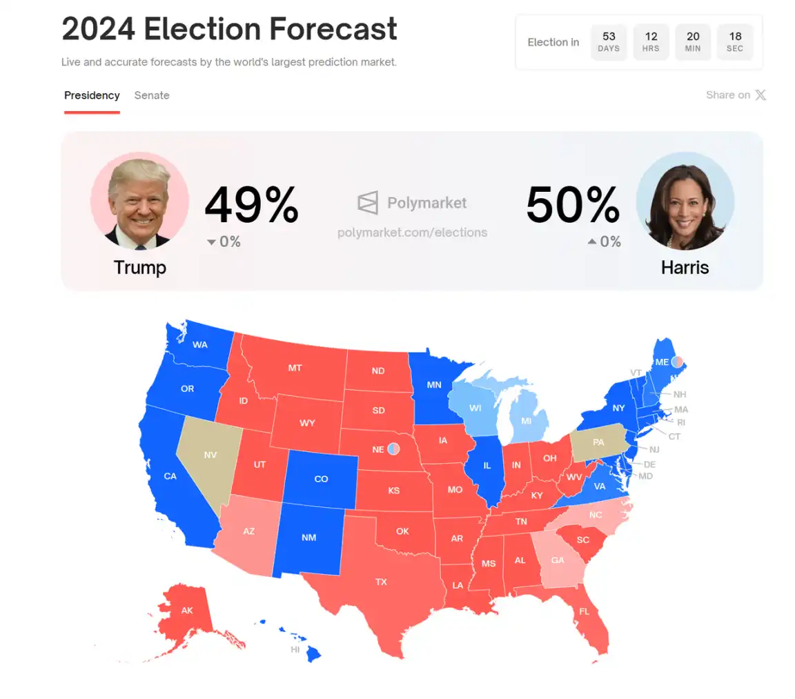 总而言之,美国大选事件会对加密行业的监管、政策等产生**影响,但不会发生较大的变化。大选也会对部分产品协议如 Polymarket 也有**的推波助澜效应。市场行情方面而言,长期影响不大,但是在重要时间节点,仍会给市场带来短期较**动。