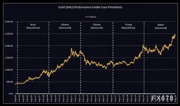 有趣的是,大选还对黄金的短期走势有**影响。与美股类似,作为避免资金的黄金也同样在大选期间,其需求量变高,因此也会在大选前几个月不断上涨。