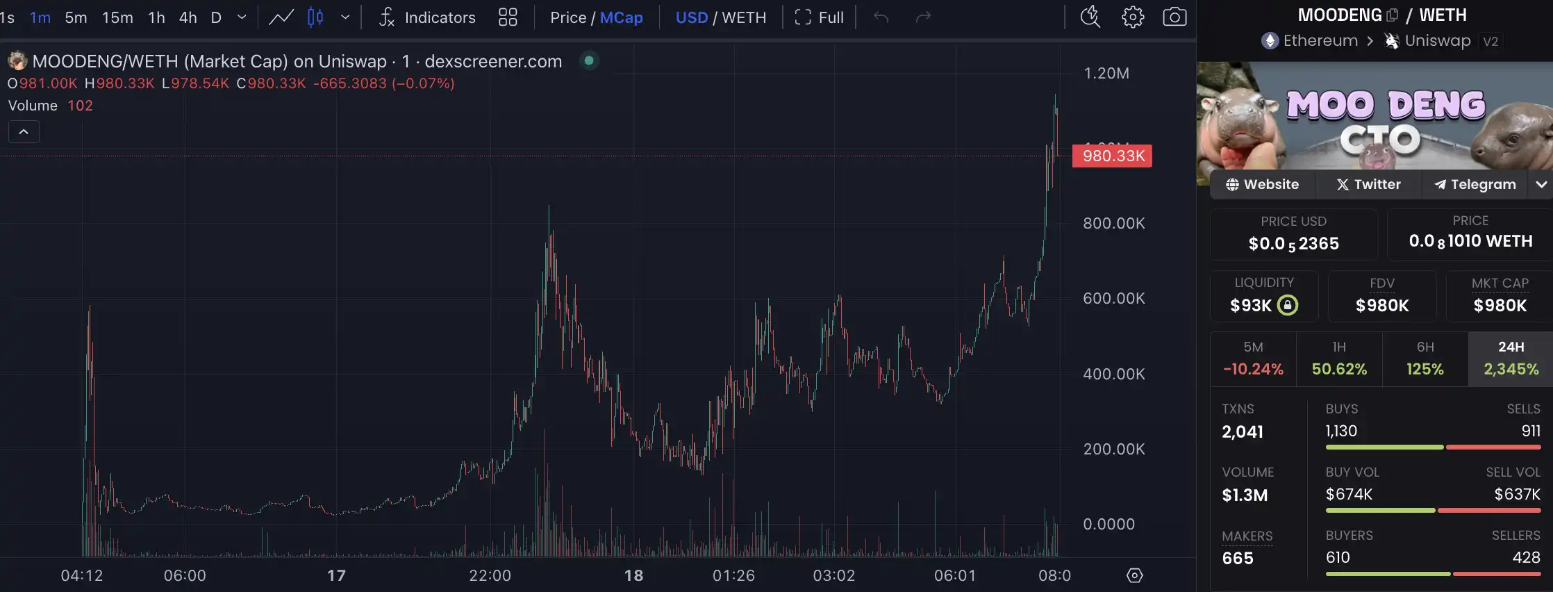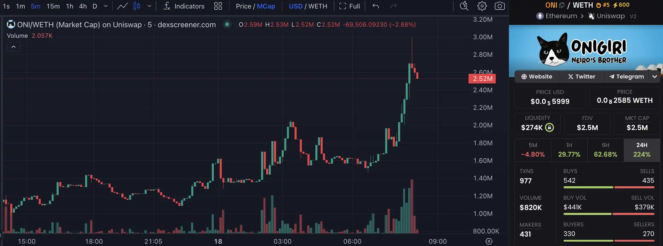 2.Neiro 突破 0.00082 美元,24 小时涨超 118%