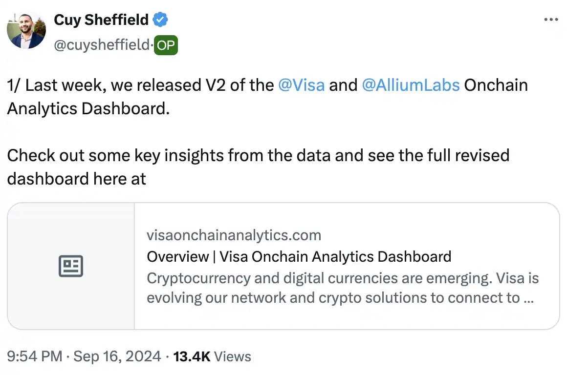 1. 基于 Visa 推出的稳定币统计图表分析,@cuysheffield