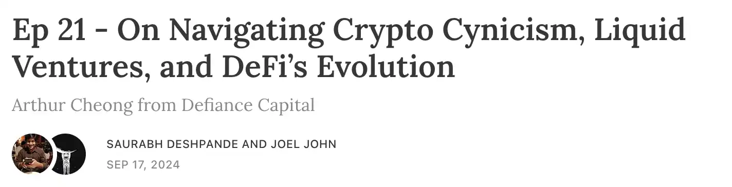 2.《Ep 21 - On Navigating Crypto Cynici**, Liquid Ventures, and DeFi's Evolution》Arthur Cheong