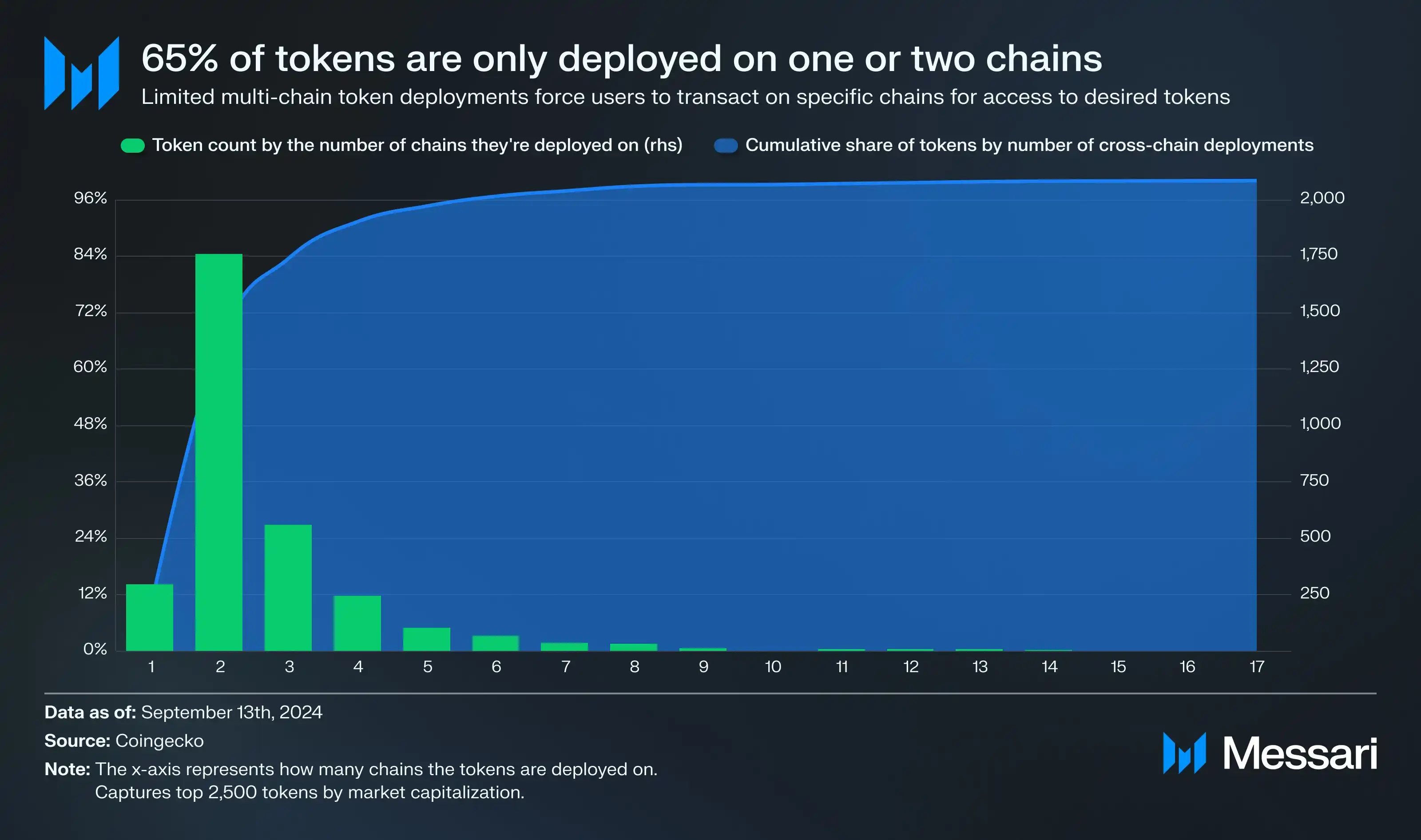 1. 当前市场上大部分**的跨链部署情况,65% 的**仅部署在一条或两条链上。