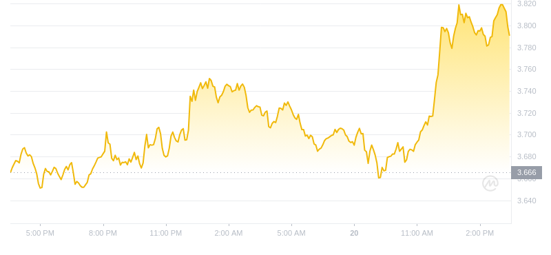Filecoin (FIL) 当前价格为 3.79 美元,24 小时交易量为 1.15 亿美元。在过去 24 小时内,FIL 价值上涨了 3.44%。