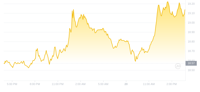ETC 在过去 24 小时内上涨了 3.06%。这推动其价格从 18.52 美元涨至目前的水平。