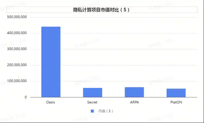 从总体市值来看,该细分领域经过多年的发展,总体市值不到 5 亿美元,规模小,占比不高,在整个隐私赛道仅占 10% 左右。