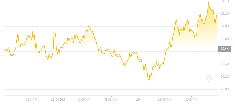 截至 2024 年 9 月 20 日 17:00,INJ 的交易价格为 21.09 美元,24 小时交易量为 10061 万美元。过去 24 小时内,INJ 价格上涨了 2.18%。