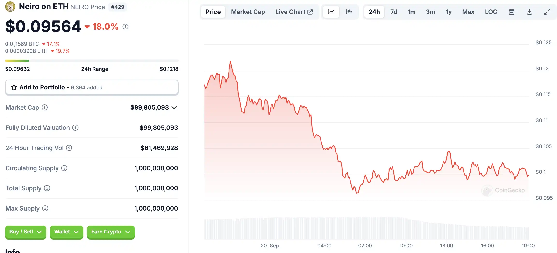 9 月 20 日 meme 资金流动情况,按交易量及涨幅筛选并排列