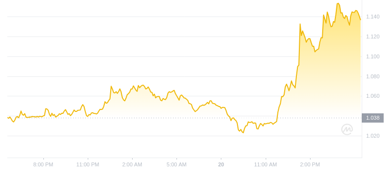 Lido DAO (LDO) 的当前价格为 1.14 美元,24 小时交易量为 1.08 亿美元。过去 24 小时内,其价格上涨了 9.46%。