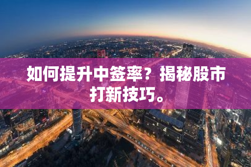 在新股发行日益**的金融市场中,中签新股成为许多投资者追求的目标。若想要提高新股中签的几率,除了基本的申购流程外,还需掌握一些关键的技巧。以下为您详细解析几个有效的策略: