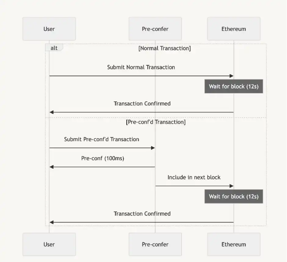 如此一来,便确保了那些亟需时效性的链上交易场景无需漫长等待 12 秒,能够直接实现毫秒级别(约 100 毫秒)的交易响应速度。