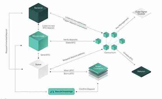 ●LBTC的铸造方式是:将BTC发送到一个存储在Babylon协议中的consortium地址,然后在以太坊上铸造LBTC。