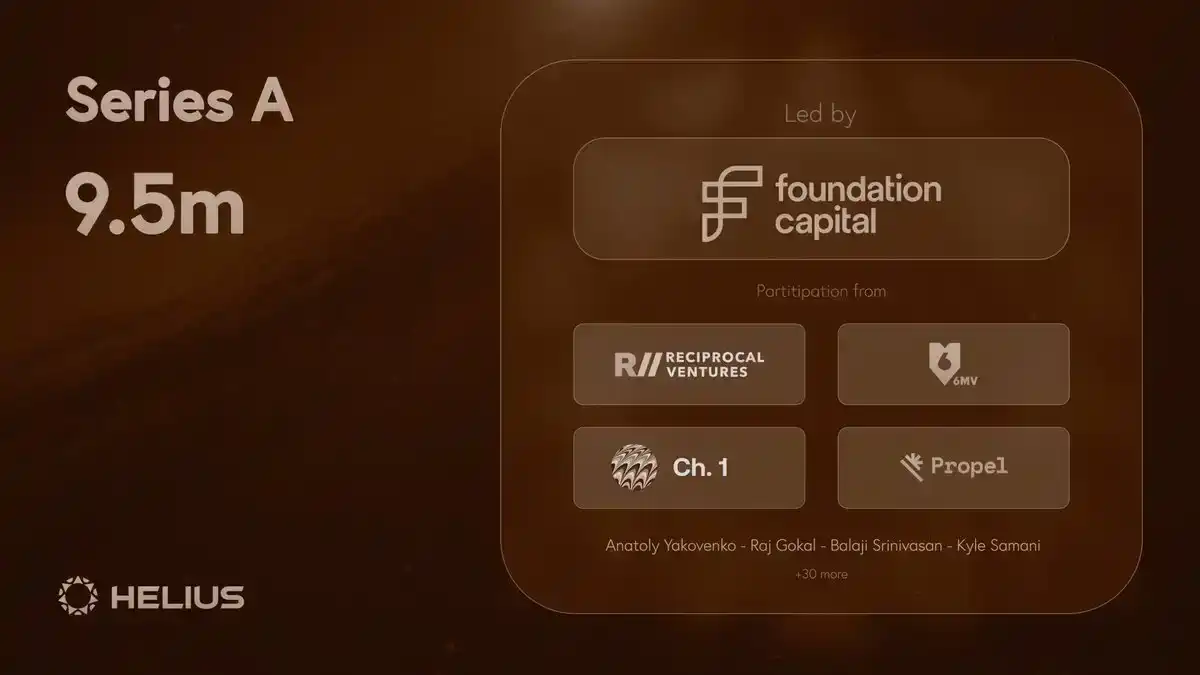 9 月 19 日,Solana 开发者平台 Helius 宣布完成 2175 万美元融资,Haun Ventures、Founders Fund、Foundation Capital、6th Man Ventures、Chapter One 和 Spearhead 等参投。