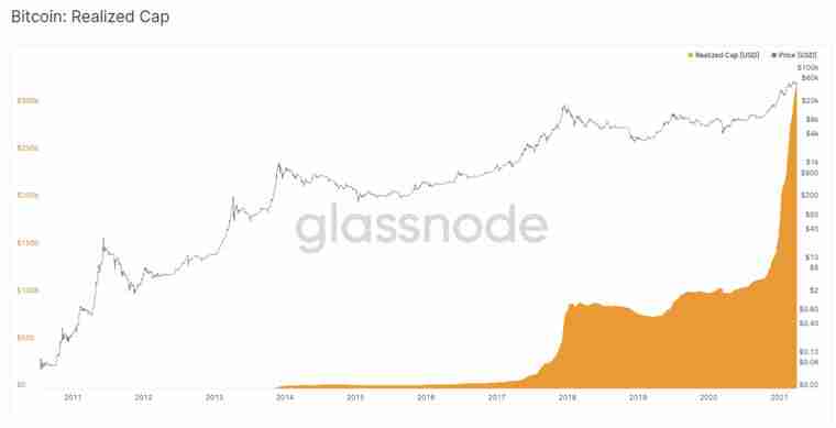 实现总市值是与总市值(总市场价值)相似的另一种变数,实现总市值根据上次移动的价格对所有UTXO进行估值,而估计其当前价值。它代表了网络中所有硬币的已实现价值,而不是它们的市场价值。 实现总市值减少了那些丢失还有长期休眠(长期未移动)的硬币的影响,并根据它们在链上的实际价格进行加权。当**一次以便宜许多的价格移动的比特币币被花费时,实现总市值会重新评估**的当前价格,从而将实现的上限增加相应的金额;同样地,如果比特币的花费价格低于上次移动时的价格,它将重新估值为更便宜的价格,并相应减少实现总市值。 实现总市值可以被视为资产中储存价值的指标。因此,该指标可以视为是对对链上总成本基础的估计,并使其成为创建其他指标的重要基础变数之一。