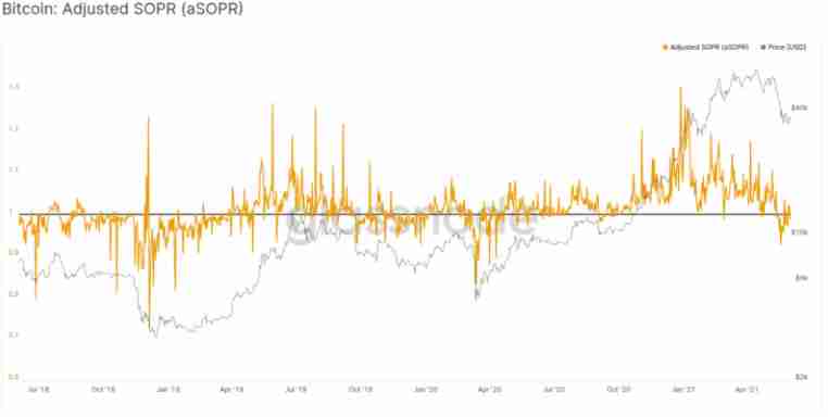 aSOPR与SOPR计算的公式相同,只是去除掉低于一个小时的交易资料。