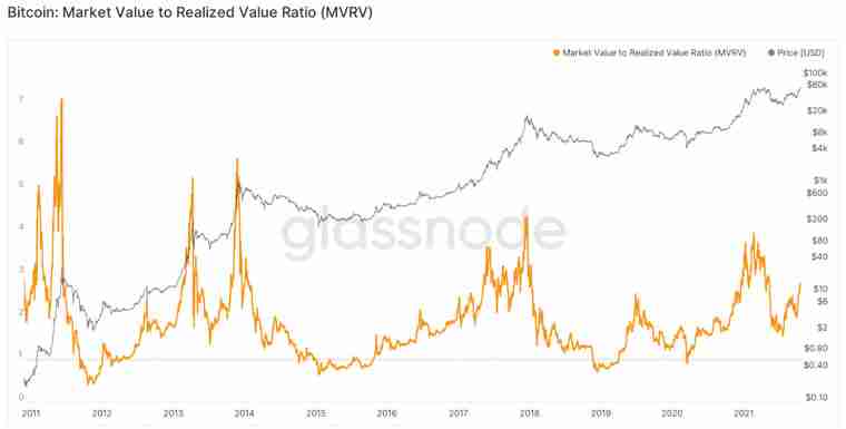 MVRV RATIO =总市场价值(Market Cap)/ 实现总市值(Realized Cap)