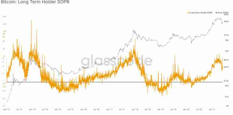 LTH-SOPR与SOPR计算的公式相同,但只包含超过155日的交易资料。