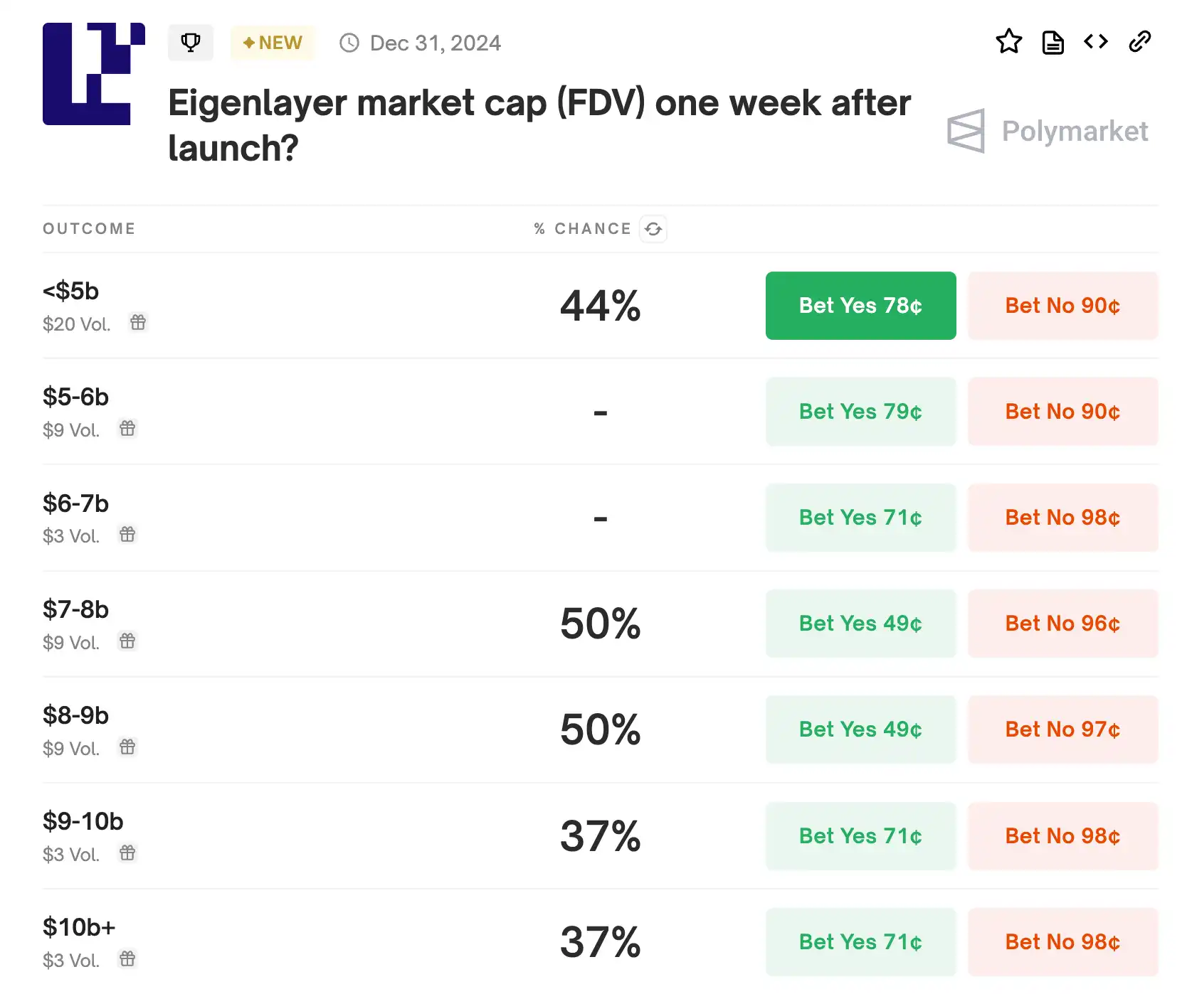 1.Eigen Layer 上线一周后 FDV 会是多少?