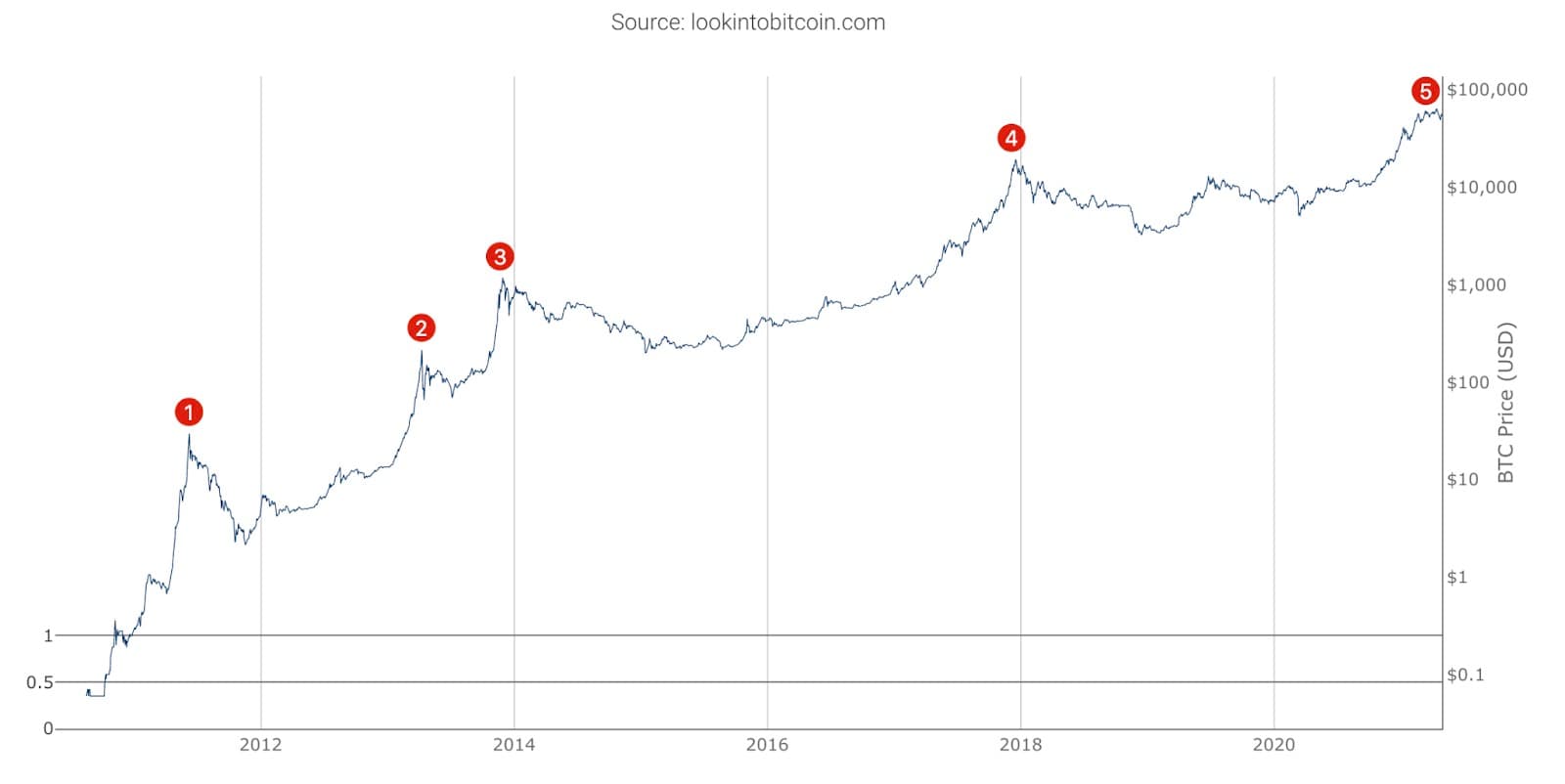 自2009年问世以来,比特币出现了五次重要的价格高峰。迄今为止,这种加密货币已创下6.4万美元左右的历史新高,主流群体的应用率也在不断提高。整个过程起伏不定,经常受到政治、经济和监管活动的影响。
