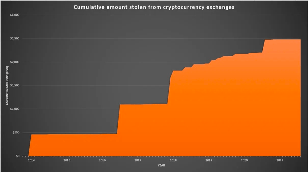 尽管由于类似银行的安全功能,被黑客攻击的成功加密货币交易所的数量正在减少,但每年仍有几家货币交易所遭到黑客攻击。根据 我们的研究, 自 2014 年以来,由于黑客、个人和网络犯罪组织等原因,价值近 25 亿美元的各种加密货币已经丢失。 最**的事件是总部位于东京的比特币交易所 Mt. Gox,据报道,它在损失了价值 4.6 亿美元的比特币后申请破产。最近,在 2020 年 9 月,超过 2.7 亿美元的各种加密货币从加密货币交易所 Kucoin 中被盗。