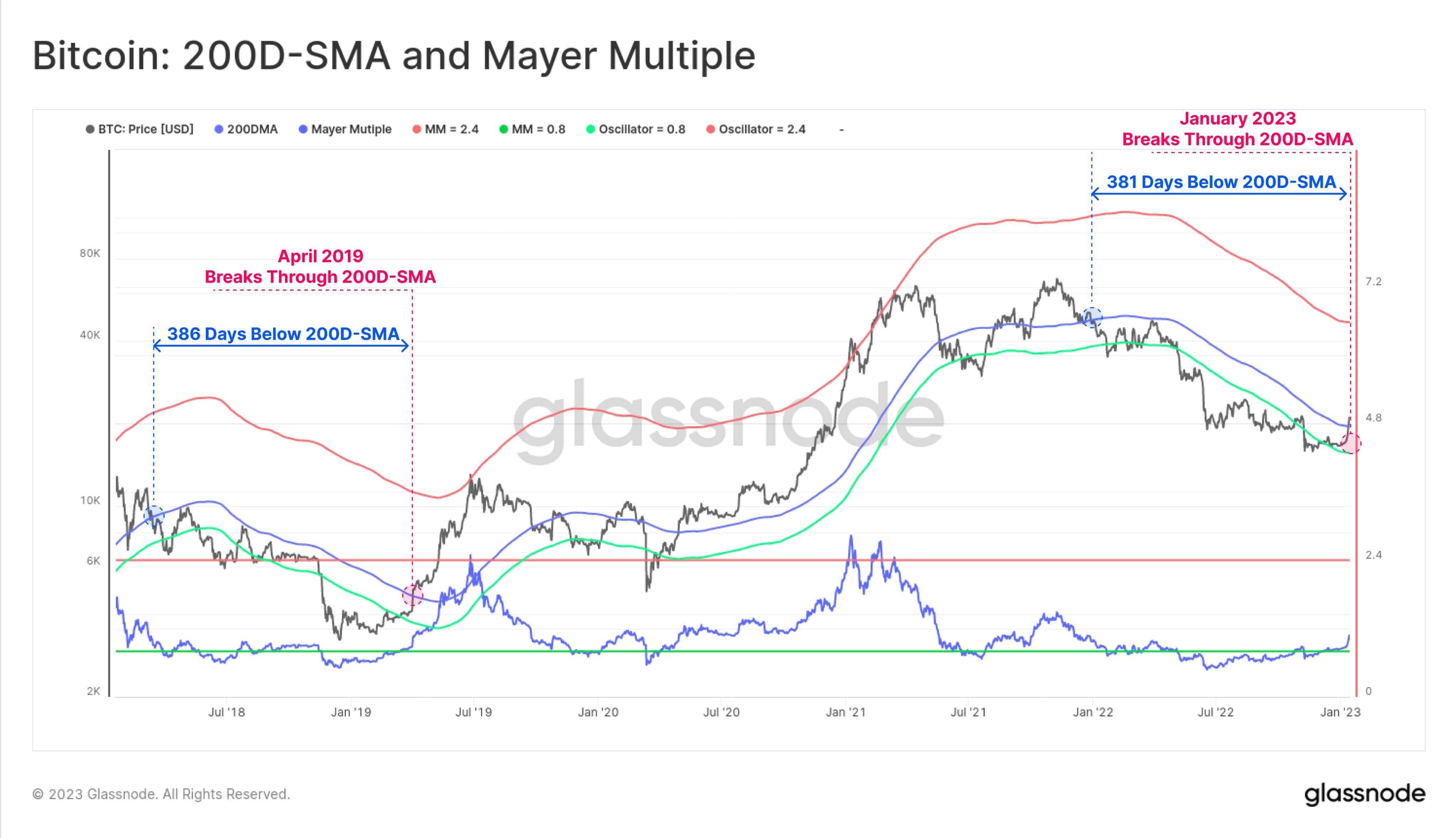 比特币价格高于 200-DMA。资料来源:Glassnode