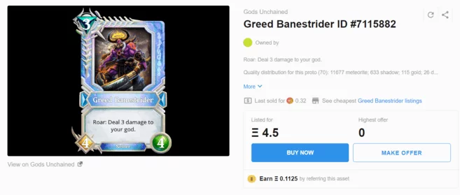 Gods Unchained 是一款数字集换式卡牌游戏,卡牌以区块链上的 NFT 形式发行。由于每张数字卡都是独一无二的,玩家可以像实体卡一样拥有和交易它们。