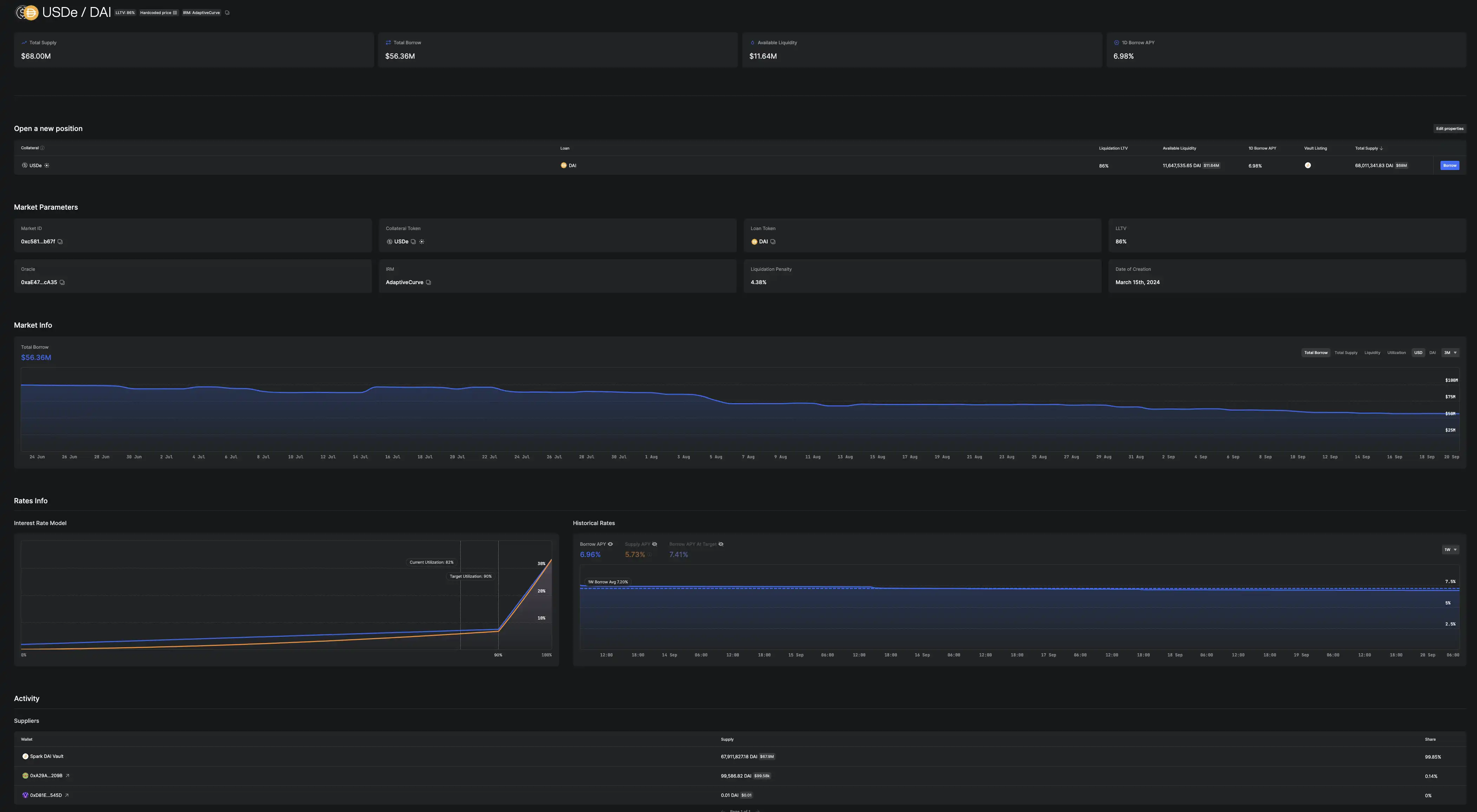 Morpho 某种程度上可以被当作企业级托管平台,公开透明,可以追溯。同时又满足了开发者和企业构建所需的**功能,并保持**控制权的要求——无需将治理权交给第三方或 DAO。今年 6 月份,Sky(MakerDao)就使用 Morpho 构建其 DAI 与 USDe 的借贷用例。