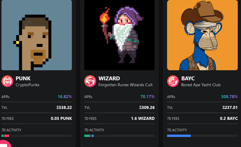 NFTX 是一个创建由 NFT 收藏品支持的 ERC20 **的平台。用户将自己的 NFT 存入 NFTX 金库,并以 1:1 的比例铸造 ERC20 **,这些**称为vToken,可以质押以获得收益奖励,也可以用于从金库购买特定的 NFT。