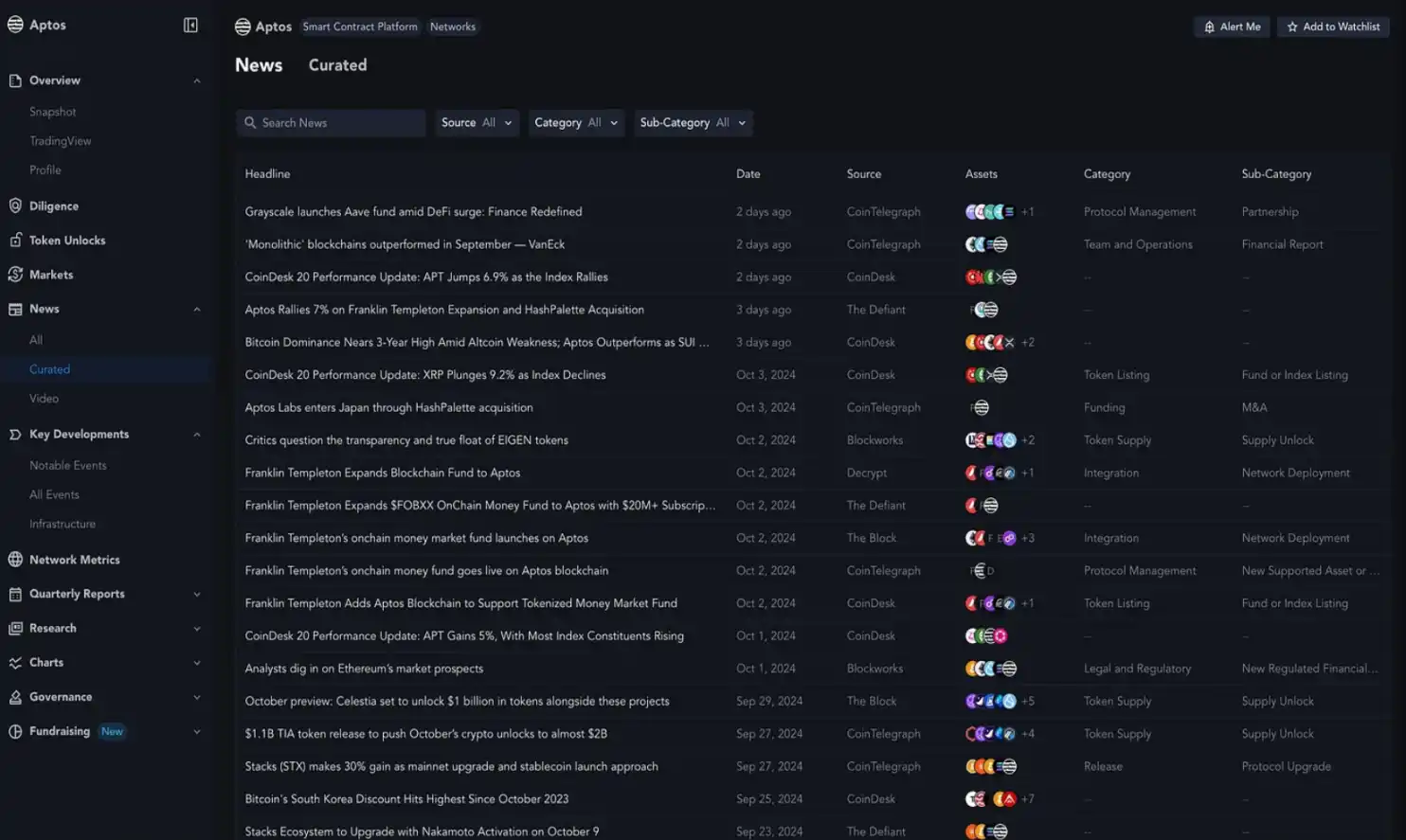 Aptos:Messari 上的**新闻仪表盘。