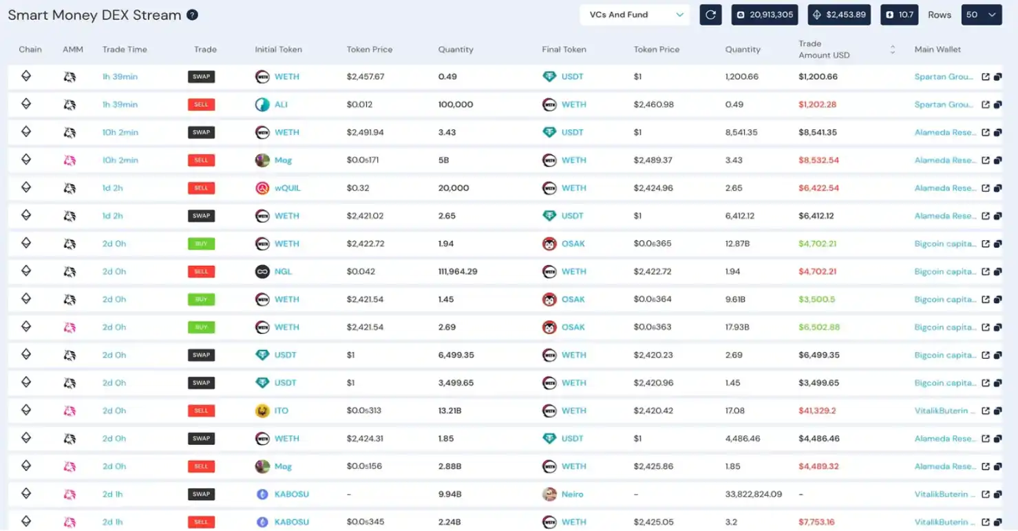 Alphanomics 上的智能资金 DEX 流数据