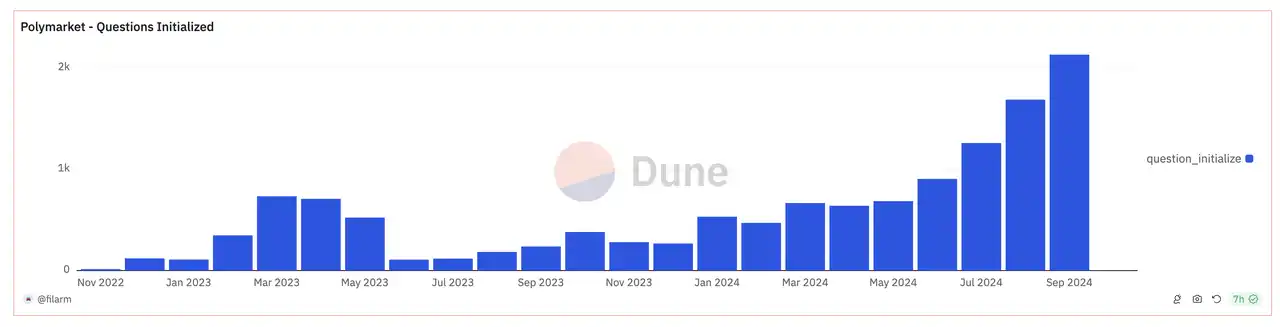 2024 年 Polymarket 上创建的事件数量增幅明显