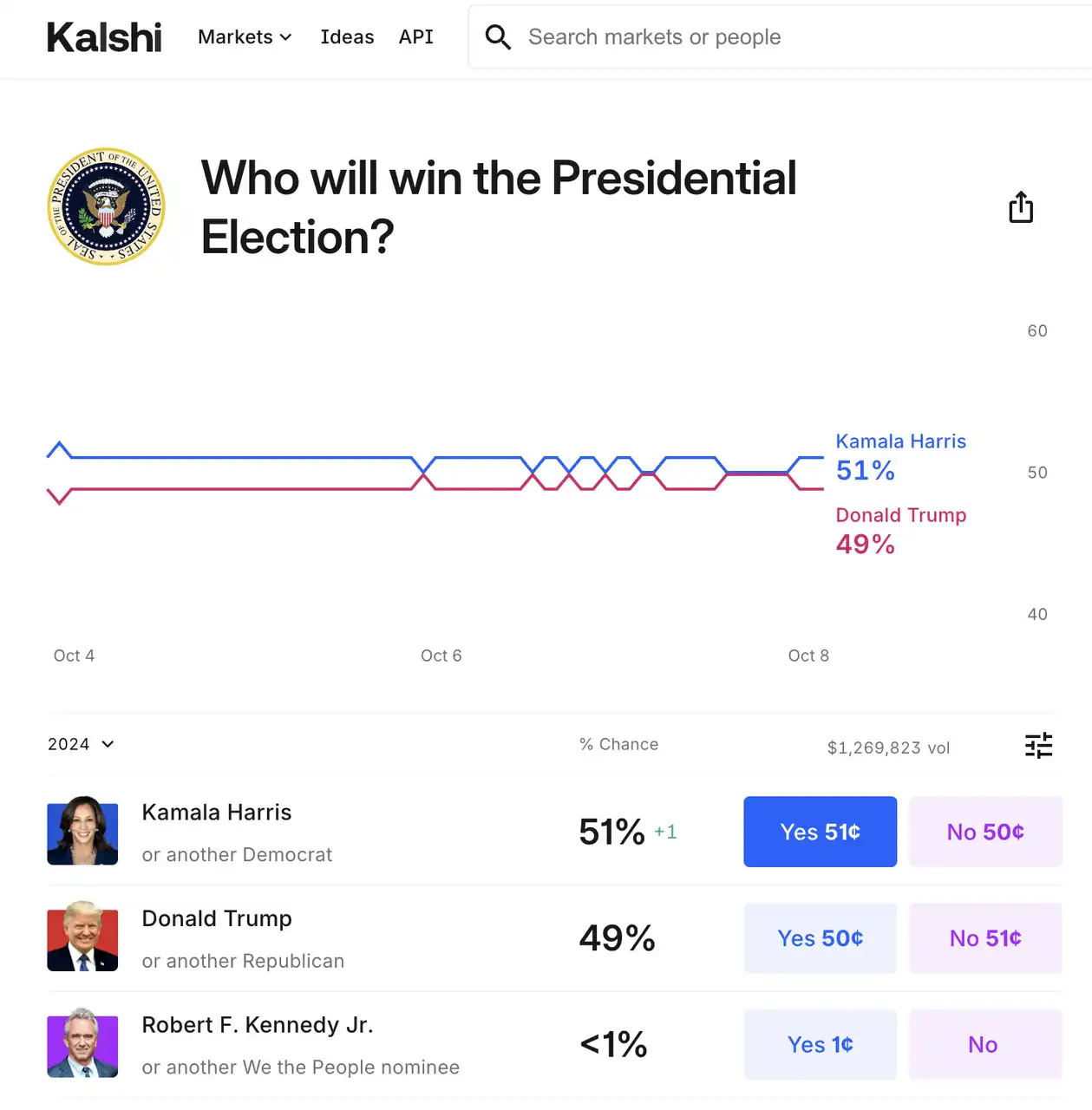 Polymarket 2024 年美国大选界面