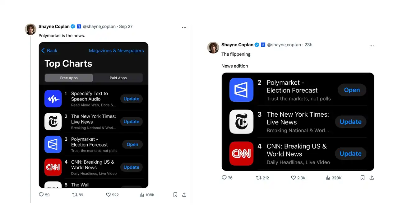 Coplan 认为 Polymarket is the news